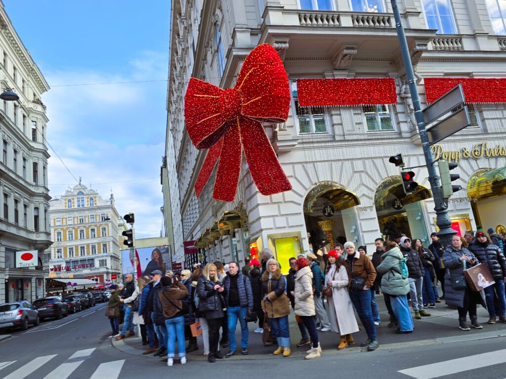 Naime, problem je u tome što između zgrade na uglu na kojoj je okačena famozna crvena mašna i pešačke zone ulice Kerntner nalazi se raskrsnica sa pešačkim prelazom. No, sudeći po fotkama influensera, izgleda da je upravo na tom prlazu ajbolja pozicija za fotografiju sa mašnom iznad glave.