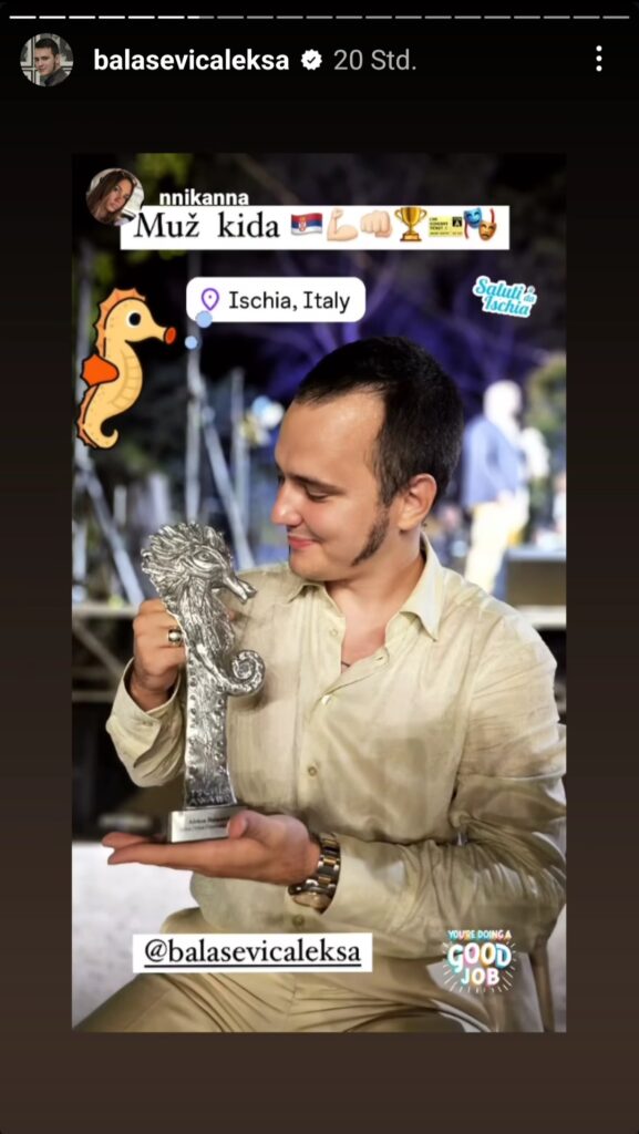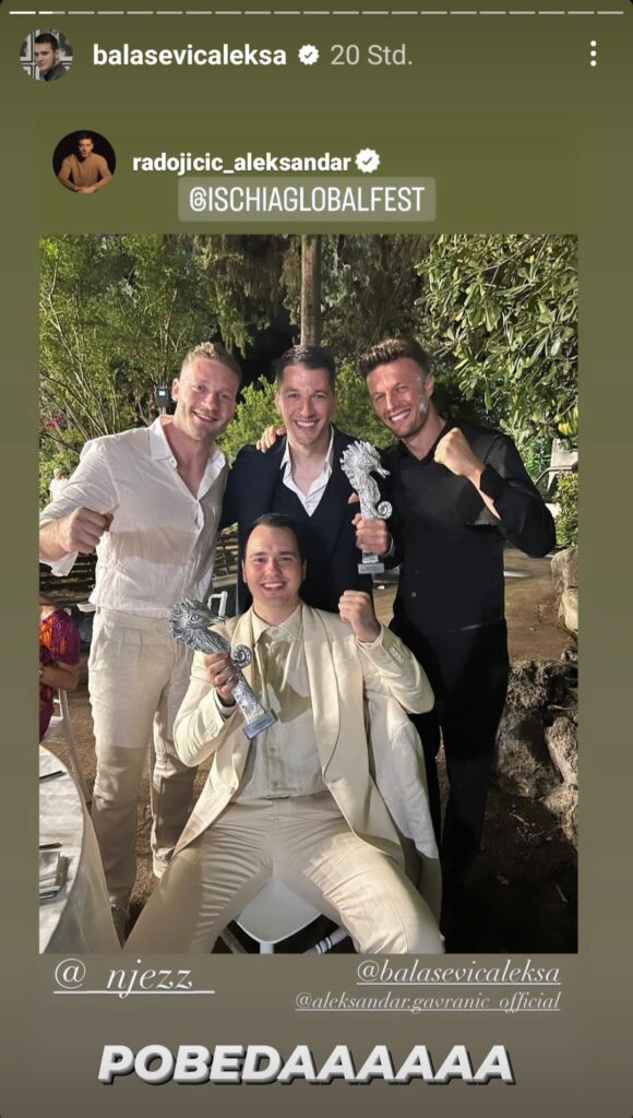 Film “Megdan: Između vode i vatre” osvojio je čak dve nagrade na prestižnom italijanskom filmskom festivalu Iskija global fest u Napulju, i to nagrada Zvezda u usponu pripala je glumcu Viktoru Saviću, dok je producent i scenarista Aleksa Balašević primio nagradu za najbolji debitantski film na festivalu.