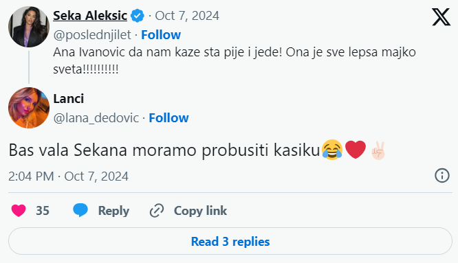 Naime, ona je prokomentarisala vitku figuru nekadašnje teniserke Ane Ivanović i nasmejala pratioce na društvenoj mreži “X”.