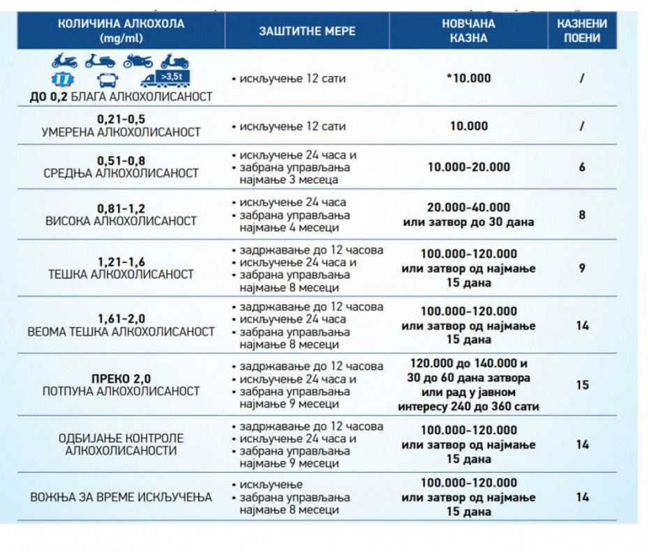 Dodatno, vozaču će biti izrečena i zaštitna mera zabrane upravljanja motornim vozilom u trajanju od najmanje osam meseci, kao i 14 kaznenih poena.