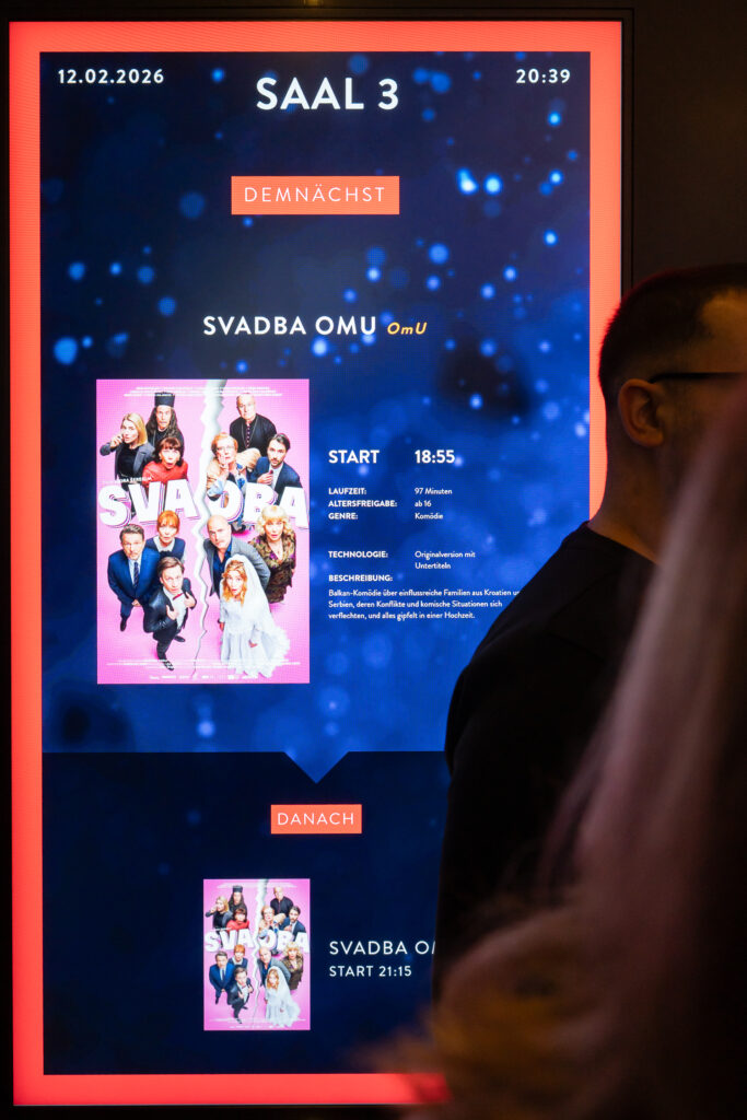 Ukoliko niste uspeli da obezbedite kartu za premijerno veče, film „Svadba“ nastavlja da se prikazuje u Beču na redovnom repertoaru u odabranim Cineplexx bioskopima. Ovog vikenda igra u više od 100 bioskopa širom Austrije, Nemačke i Švajcarske, dok od naredne nedelje stiže i u ostale evropske zemlje.