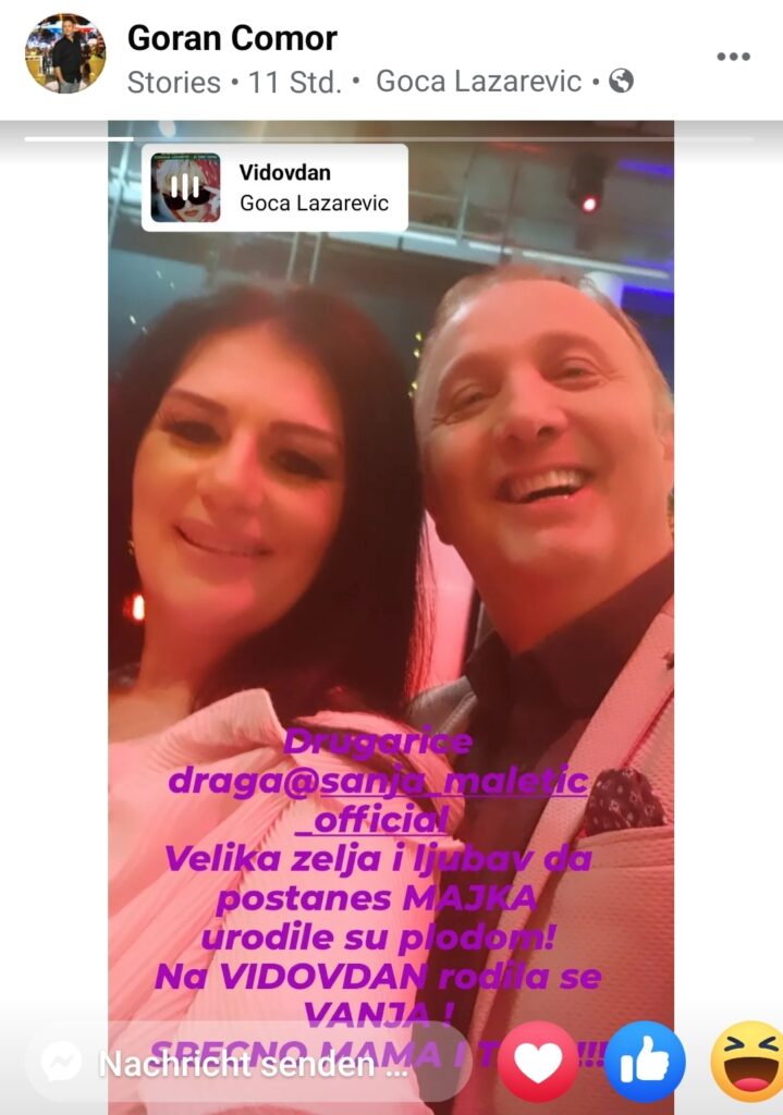 Iako su prve informacije o Sanjinom porođaju danas izazvale mahom nevericu u javnom prostoru, kada su njeni prijatelji poput televizijskog voditelja Gorana Čomora počeli da čestitaju putem društvenih mreža, pa i njena sestra Aleksandra, postalo je jasno da je istina! Sanja i njen suprug su dobili najlepši mogući dar!