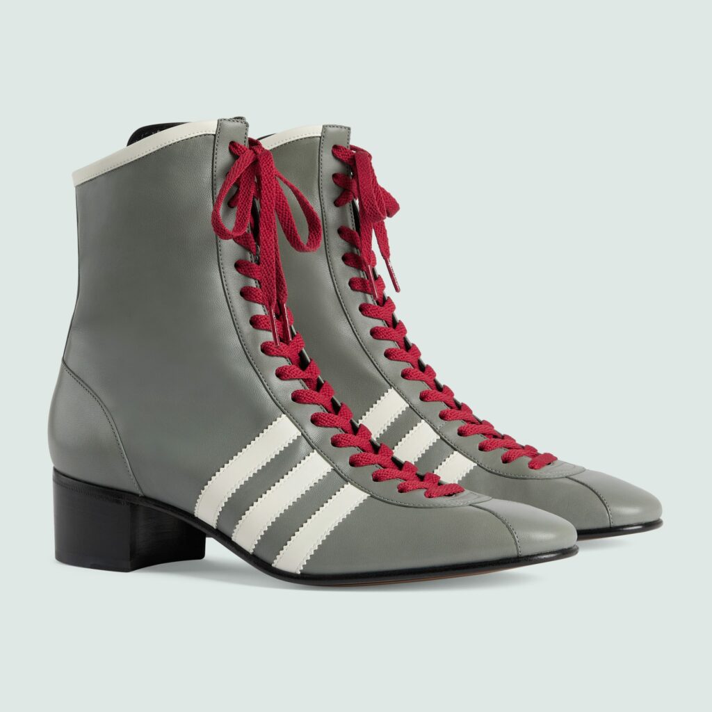Tokom svoje saradnje „Adids & Gucci“ do sad su svetu predstavili svoje modele na štiklu, čizme, patike, natikače, mokasine itd., najnovijom saradnjom na red su došle čizmice u retro stilu i na pertlanje.