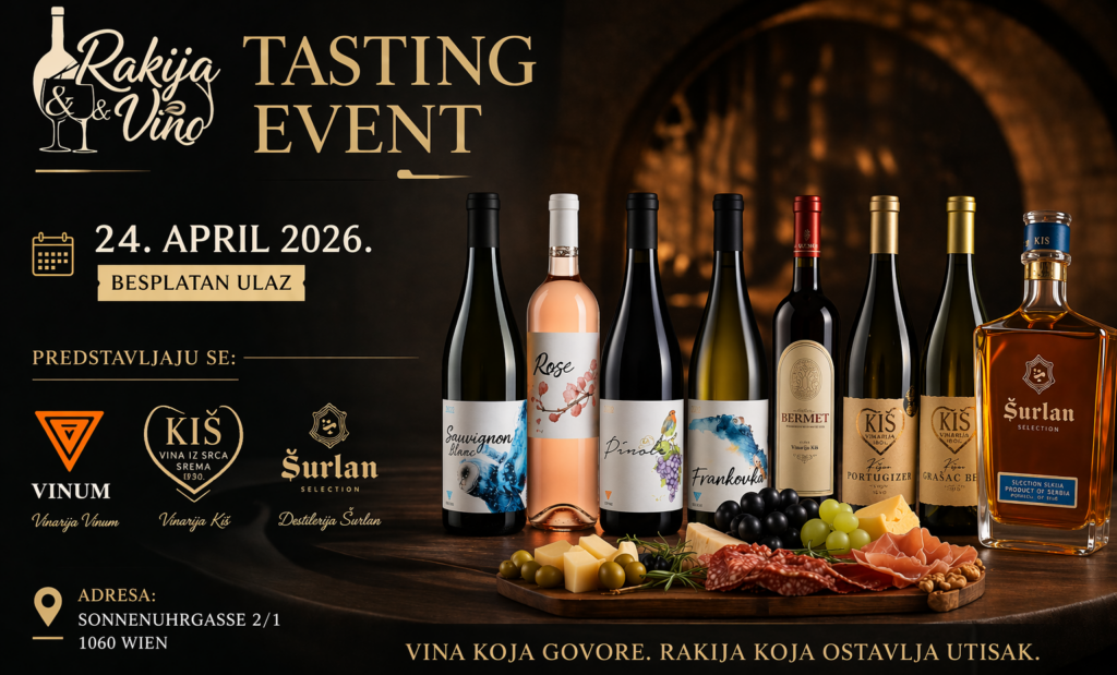 Ljubitelji vina i domaćih destilata imaće priliku da narednog petka u Beču prisustvuju jedinstvenom događaju koji…