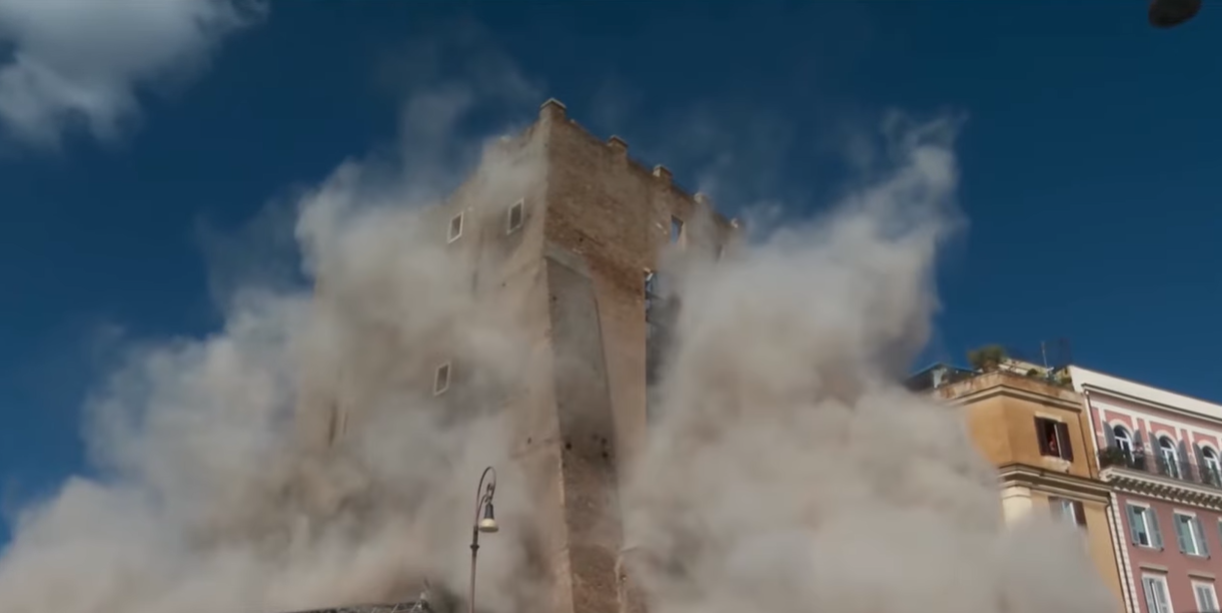 Zbog radova, područje oko kule bilo je zatvoreno za pešake. Zgradu je 1238. godine podigao papa Inoćentije III za svoju porodicu.