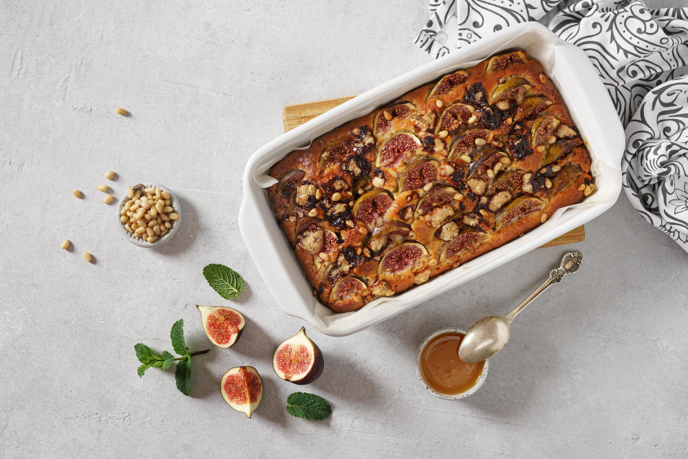 Umutiti jaja i šećer. Dodati vanilin šećer, ekstrakt vanile, so, koru pomorandže i jogurt. Zatim dodati omekšali maslac i mutiti na manjoj brzini. Pomešati griz i prašak za pecivo i dodati u smesu od jaja. Sve dobro umutiti u ujednačenu masu i sipati je u podmazan pleh. Prepolovljene sveže smokve utisnuti u testo tako da kora bude dole u testu. Kolač peći na 180 stepeni oko pola sata.